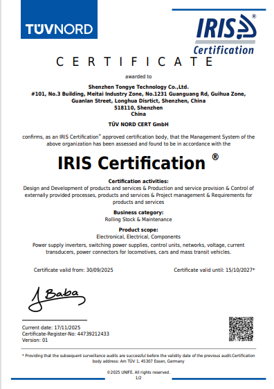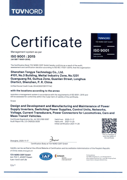 成立二十多年來,通業(yè)科技勵精圖治,在跟蹤國際軌道交通前沿技術(shù),引進(jìn)、消化、吸收方面做了大量工作。開發(fā)出了一系列國內(nèi)領(lǐng)先的擁有自主知識產(chǎn)權(quán)的軌道交通行業(yè)使用的電子部件,涵蓋電源、控制、網(wǎng)絡(luò)、通信、風(fēng)機(jī)、電機(jī)等領(lǐng)域。公司產(chǎn)品以其優(yōu)異的性能、穩(wěn)定的質(zhì)量,得到了用戶的一致贊譽(yù),成為軌道交通行業(yè)一流的部件制造企業(yè)。