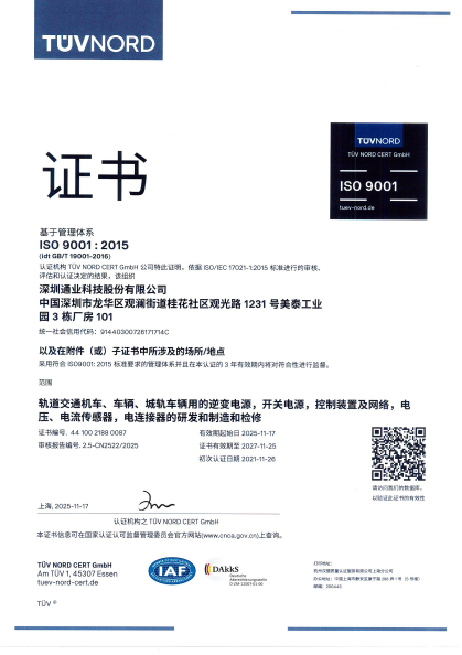 深圳通業(yè)科技股份有限公司(以下簡稱“公司”)成立于2000年,是一家專業(yè)從事軌道交通電氣裝備產(chǎn)品研發(fā)、生產(chǎn)、銷售及維保服務(wù)的國家級高新技術(shù)企業(yè)。公司于2021年登陸創(chuàng)業(yè)板成功上市(股票簡稱:通業(yè)科技,股票代碼:300960);公司總部位于深圳,下設(shè)廣州子公司、石家莊子公司、成都子公司、武漢子公司、長春子公司及全國多地檢修服務(wù)站,銷售和服務(wù)網(wǎng)絡(luò)遍及全國。
